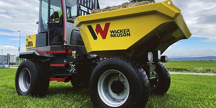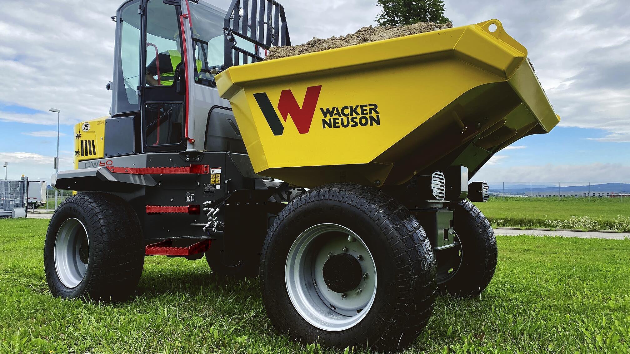 Wacker Neuson presents new versions of the two biggest wheel dumpers: the models DW60 and DW90 convince with impressive additional options, improved safety features and even more comfort. Combined with sophisticated equipment features such as the hydrostatic 4-wheel drive with automatic ECO mode and auto-stop function, working even more economically is possible with these dumpers.