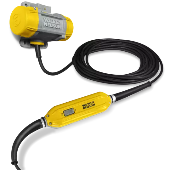 External vibrator for exposed concrete, with integrated personal protection switch (Bodyguard™).