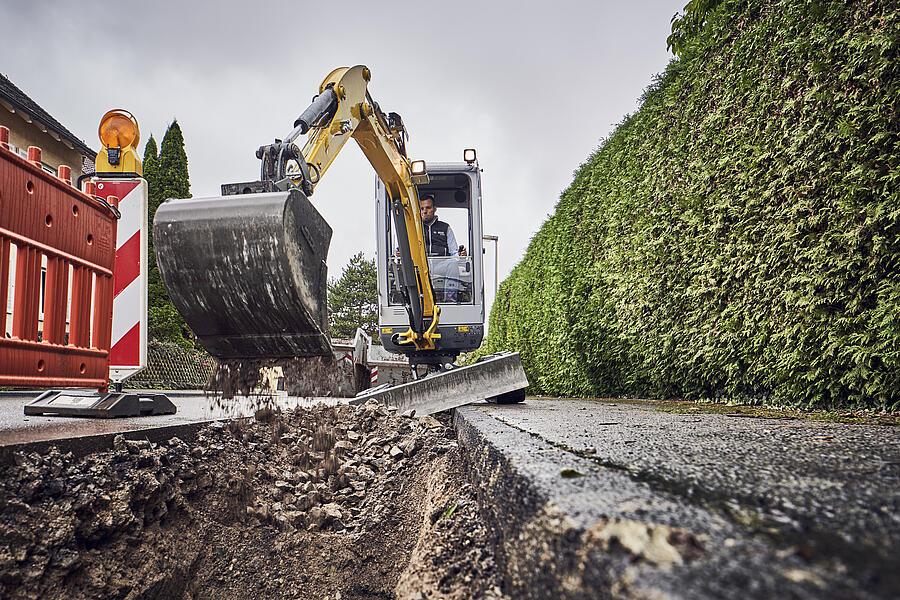 Insbesondere kompakte Bagger bewegen sich oft auf unebenem Gelände. Sie arbeiten an Böschungen oder Bordsteinen. Genau dann neigt sich der gesamte Bagger unweigerlich zu Seite. Eine schräge Sache.
