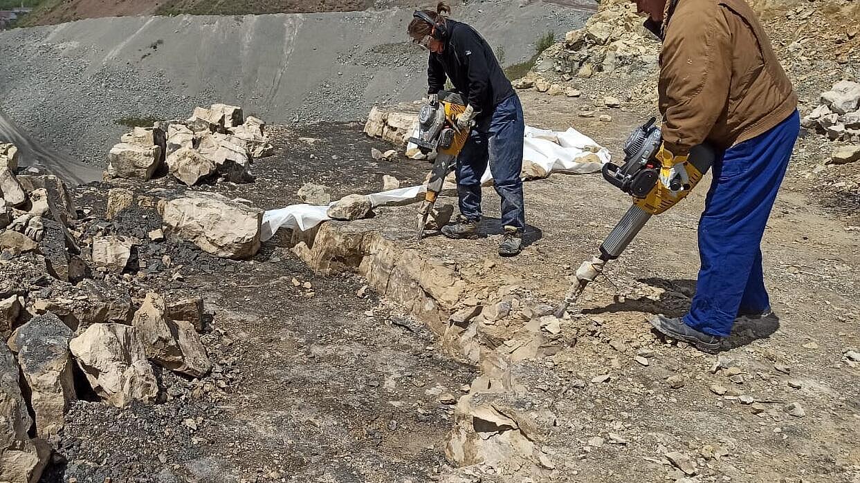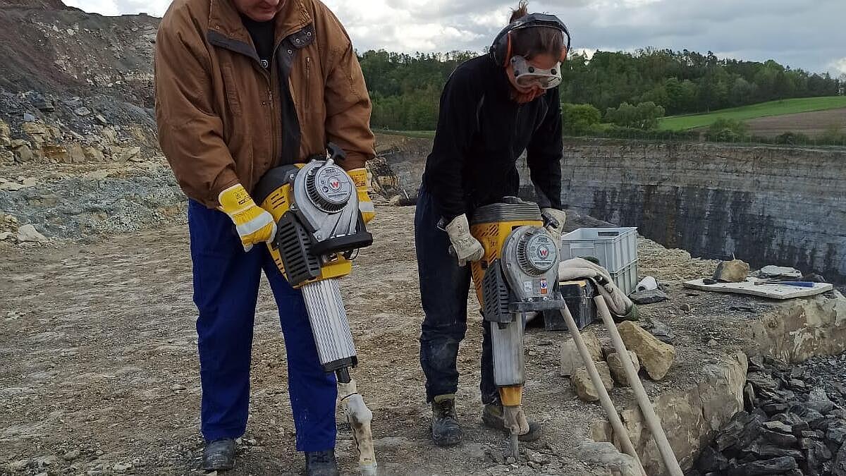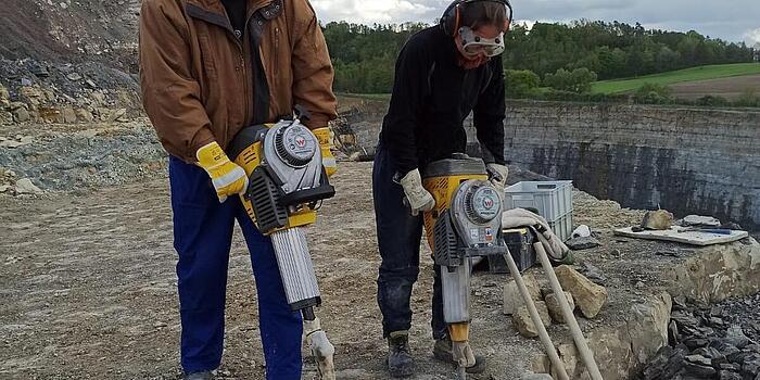 Viele Jahre kam das Vorgängermodell BH24 bei Ausgrabungen auf der Hohenloher Ebene, Baden-Württemberg, unter der Leitung des Naturkundemuseums Stuttgart zum Einsatz. Der dortige Steinbruch ist die fossile Fundstelle mit der höchsten Diversität weltweit, unteranderem die des ältesten Schildkröten-Fossils sowie diverser Millionen Jahre alter Saurier-Zähne und Schädel. Immer mit dabei: unser Abbruchhammer. Die beiden BH65 sind neu im Team und lösen den Vorgänger BH24 ab. Die Hämmer werden im Steinbruch eingesetzt, um eine 30-40 cm dicke Dolomit-Steinschicht abzutragen. Dank ihrer hohen Einzelschlagenergie und der dabei geringen Hand-Arm-Vibration sind sie dafür die idealen Geräte. Eine wirklich besondere Einsatzgeschichte!